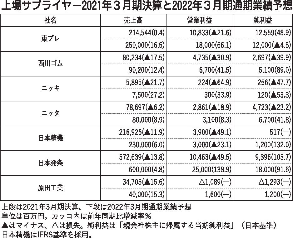 〈上場サプライヤー2021年3月期決算と2022年3月期通期業績予想〉