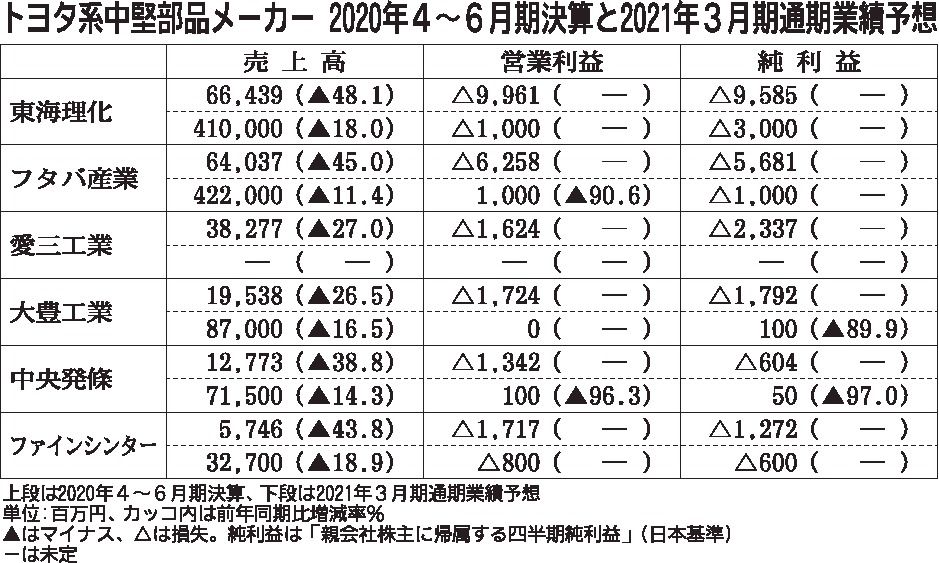 トヨタ系中堅部品6社の2020年4~6月期業績、5社が営業利益ほぼゼロ 収益構造の改善徹底へ