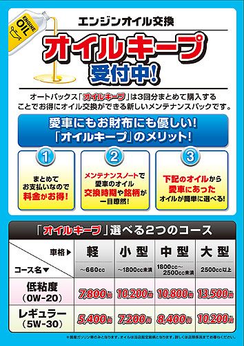 オートバックスセブン、メンテパックに「オイルキープコース」導入