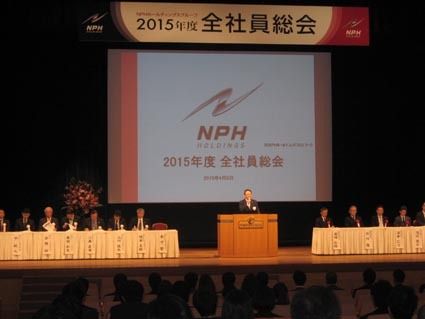 【神戸】NPHホールディングスは8日、神戸市中央区のホテルで「全社員総会」を開催した。グループの全社員に加え、株主や取引先らを招き、2014年度決算見込みと15年度の会社方針などを説明した。その後、愛媛トヨタ社長、ネッツトヨタ南国相談役の...