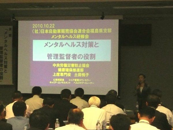 【郡山】福島県自動車販売店協会(佐藤良也会長)はこのほど、2010年の「拠点長研修会」を郡山ユラックス熱海で開催した。中央労働災害防止協会健康確保推進部上席専門役の土田悦子氏を講師に招き、「メンタルヘルス対策と管理監督者の役割」と題した講...