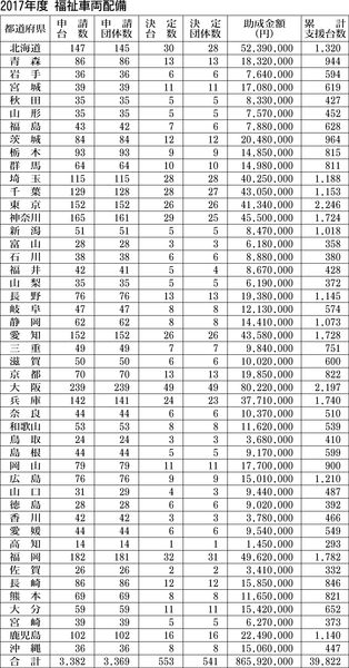 日本財団(笹川陽平会長)は2017年度の福祉車両の助成を決定した。それによると、支援配備台数は553台台で支援先団体(法人数)は541団体にのぼり、支援金額は合計8億6592万円となった。同財団は「障害の有無や年齢に関わらず誰もが不自由な...