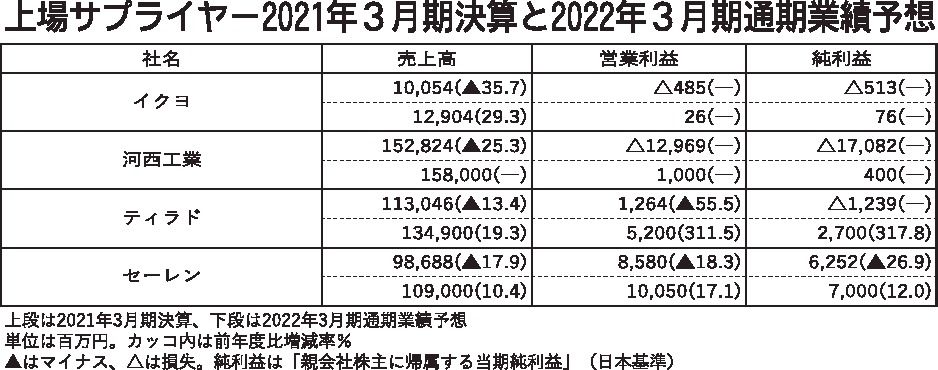 〈上場サプライヤー2021年3月期決算と2022年3月期通期業績予想〉