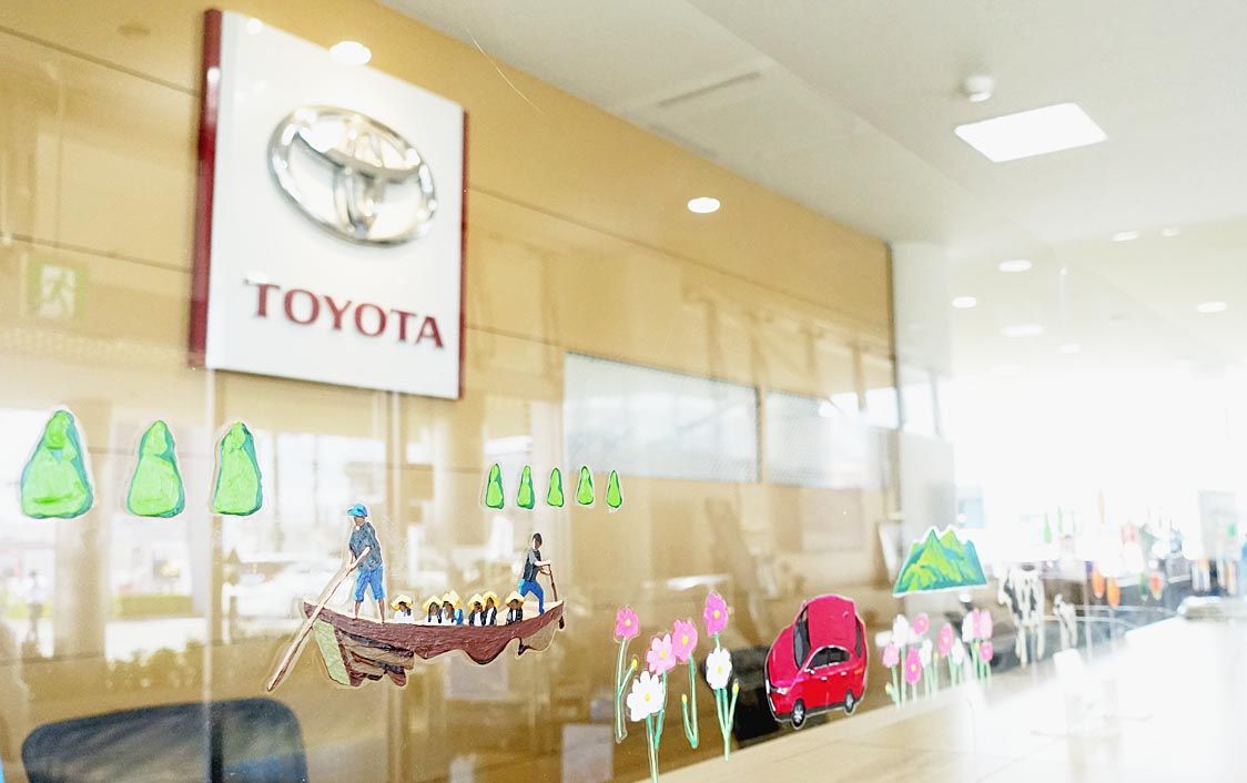 熊本トヨタ、ショールームのアクリル板にアートを描く