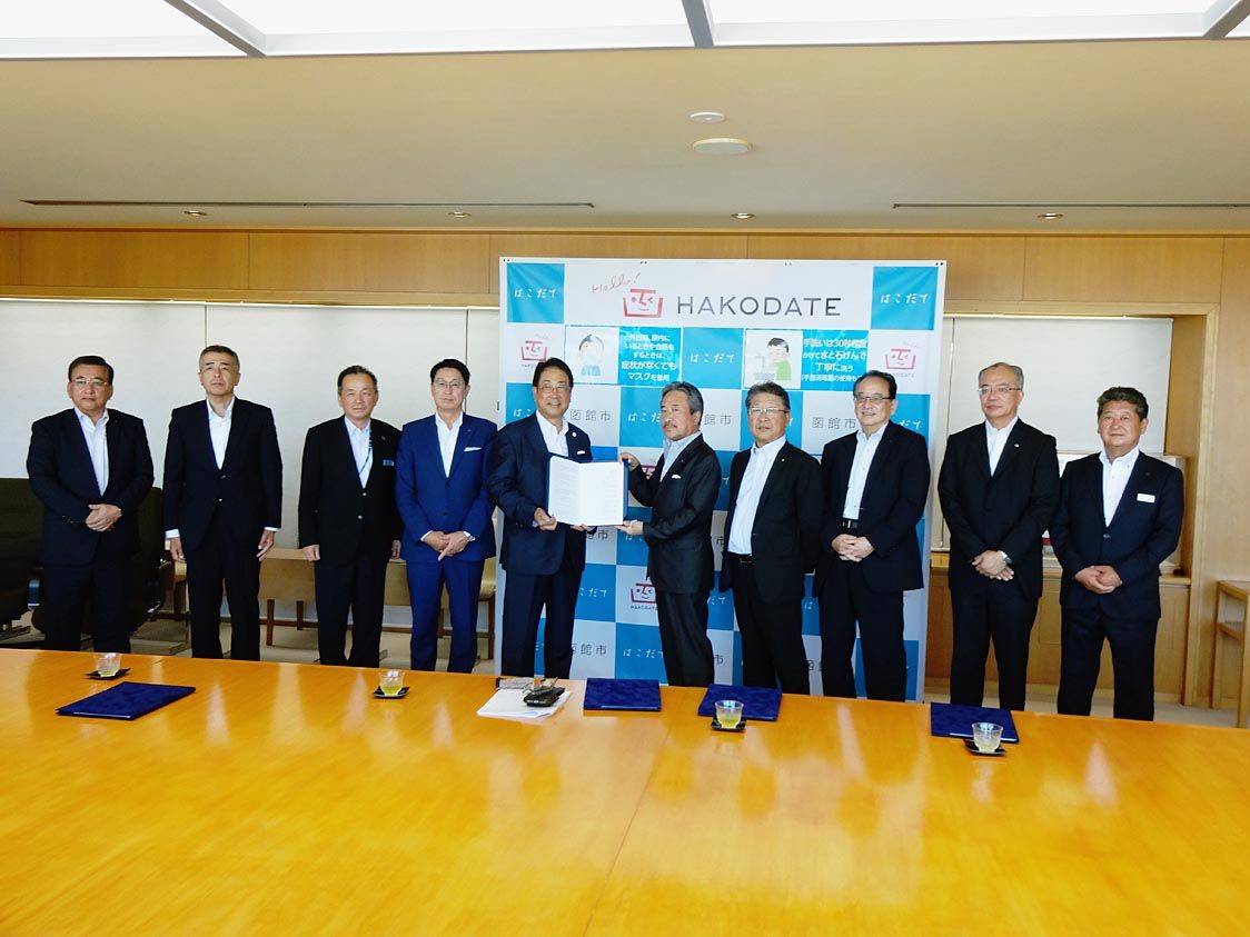函館地区販社9社、市と災害時協定 車両50台無償貸与