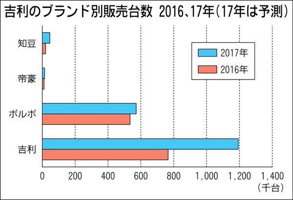 ◆吉利の勢い 野心的な拡大政策 浙江吉利控股集団は2016年に130万台の小型車(乗用車+小型商用車)を生産(プロトンとロータスを除く)。17年は新たに投入したクロスオーバーモデルの需要増により生産台数が約200万台に拡大している。 中国...
