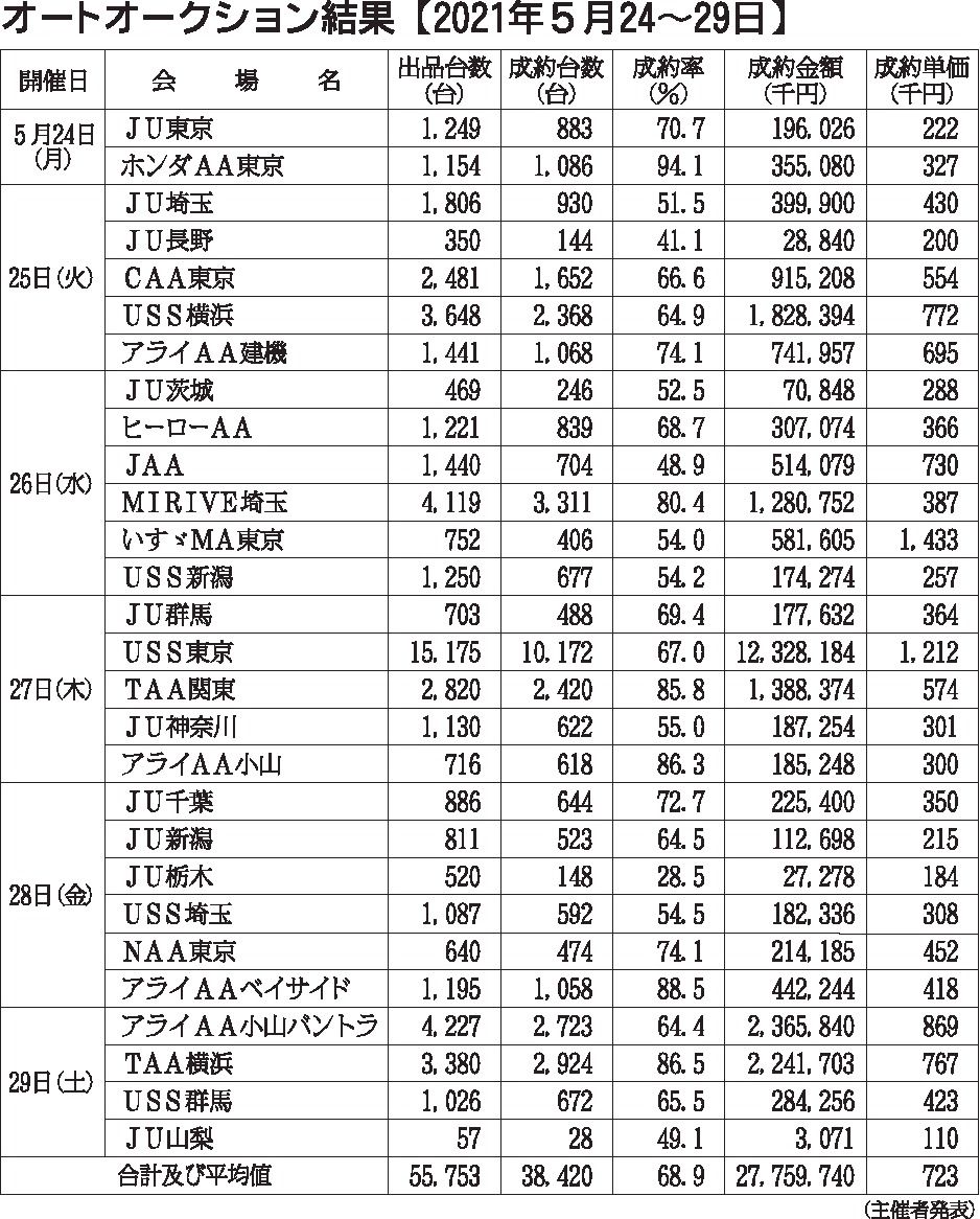 〈オートオークション結果〉首都圏 2021/5/24~29