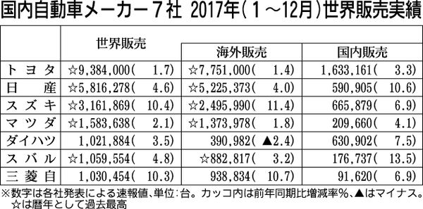 乗用車7社、17年の世界販売実績 トヨタなど過去最高