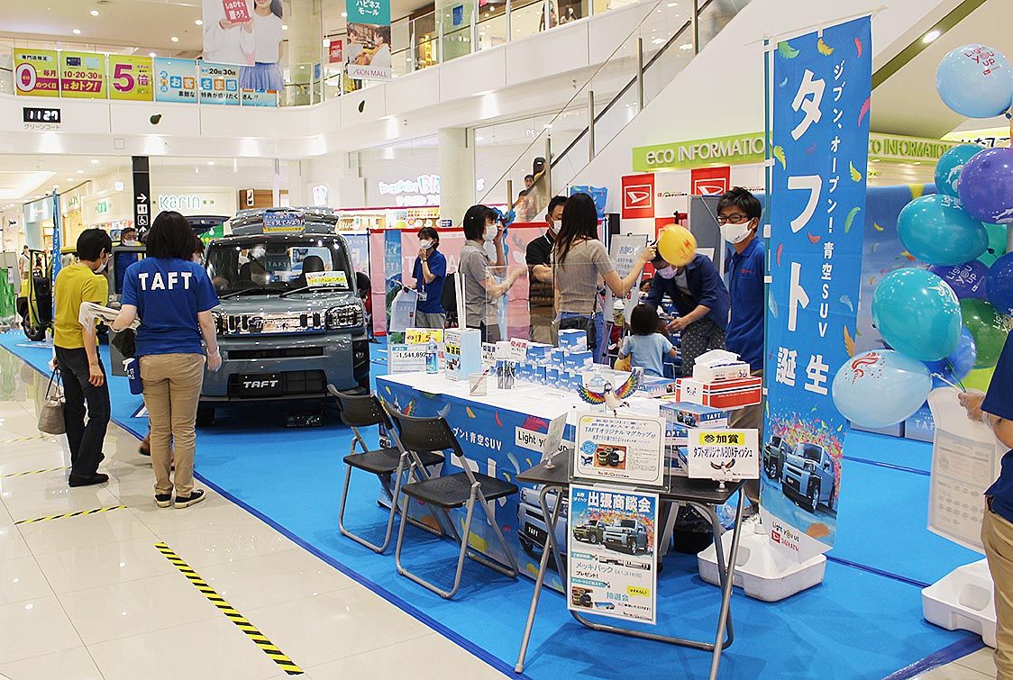 【山形】山形ダイハツ(鈴木肇子社長)は、天童市のイオンモール天童で「出張商談会」を開催した=写真。同社としては初の試み。休日でにぎわうショッピングモールに新型「タフト」を展示し、来場者へアピールした。 会場にはグレードの異なるタフト2台を...