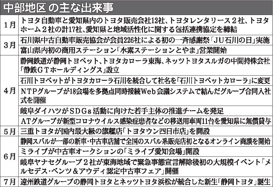 中部地区7県(愛知、岐阜、三重、静岡、石川、富山、福井)の2020年上期の自動車流通業界は、19年10月の消費税率引き上げと3月から顕著となったコロナ禍による消費者の外出自粛の影響で、厳しい状態が続いた。特にコロナ禍への対応では、4月上旬...