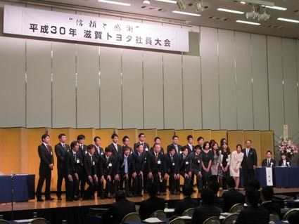 【大津】滋賀トヨタ(藤敦秀二社長)は1月30日、大津市内のホテルで「平成30年全社員大会」を開いた。社員295人をはじめ、トヨタ自動車国内営業部の中本卓治近畿営業部長らが出席して、表彰式と方針発表などを行った。 昨年に優秀な成績を収めた社...