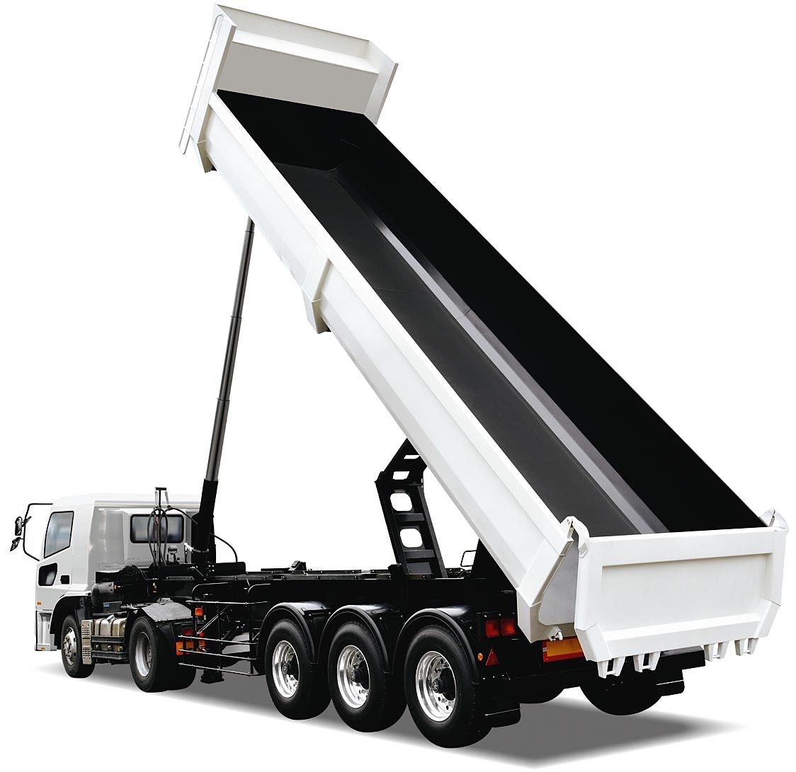 極東開発工業は、積載量の向上と輸送経済性を両立させた新型「テレスコ式土砂ダンプトレーラ」(車両総重量36トン)を発売した。ダンプ機構にテレスコ式シリンダーを導入して重量バランスを最適化した。ボディー材質には耐摩耗鋼板「HARDOX」を採用し、曲げ構造のボディー形状としたことで補強柱レスとし、大幅な軽量化を実現した。