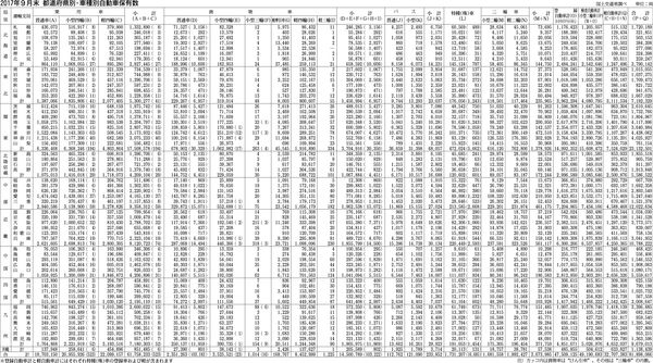 【2017年9月末 都道府県別・車種別自動車保有数】