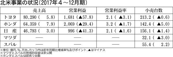 連載「流れを読む 自動車メーカーの17年4~12月決算より」(中)厳しさ増す北米事業 重いインセンティブ負担
