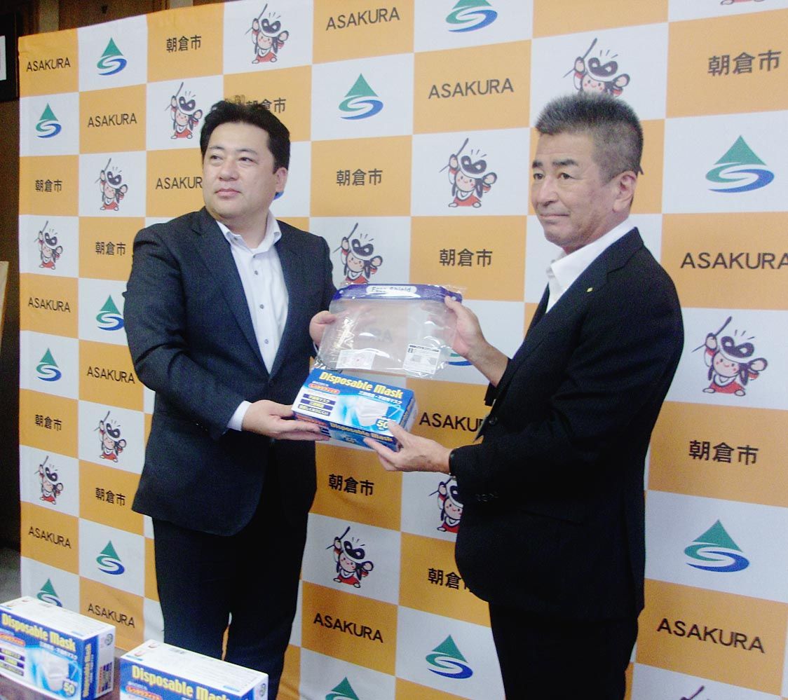 【福岡】トヨタユーゼック(北口武志社長)が運営するTAA九州会場(小郡市)は、地域社会への貢献活動として小郡市と朝倉市それぞれに、マスク1500枚とフェースガード400枚を寄付した。 同社の人見真司理事と稲田桂二会場長らが5日、小郡市総合...