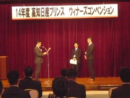【高知】高知日産プリンス(臼井裕喜社長)は、高知市内のホテルで「2014年度ウィナーズコンベンション表彰式」を開き、前年度に実績を上げたカーライフアドバイザー(CA)に各賞を贈った。14年度の車両販売に最も貢献したMPV賞は、新車部門で土...