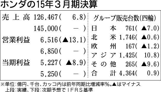 ホンダが28日に発表した2015年3月期連結決算(米国会計基準)は、グループ販売台数で3年連続過去最高となり、3年連続の増収で過去最高の売上高となったものの、相次ぐリコールへの対応などの影響で3年ぶりに減益に転じた。16年3月期はグループ...