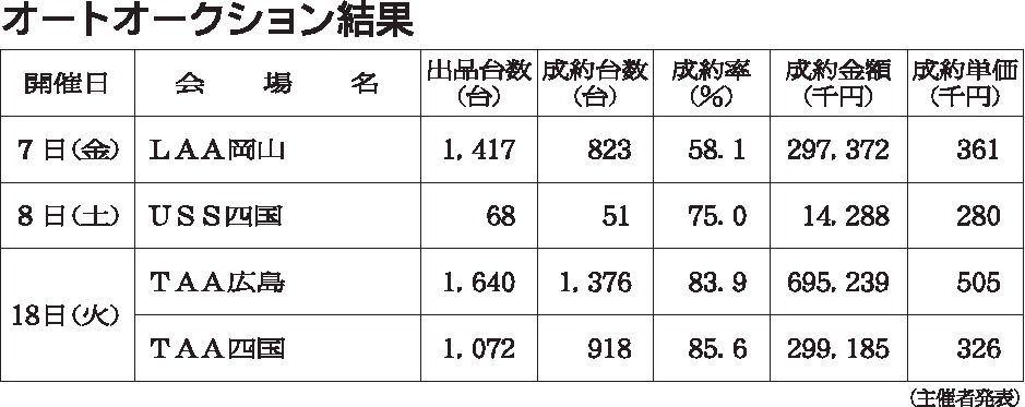 〈オートオークション結果〉中四国地区 2020/8/7~18