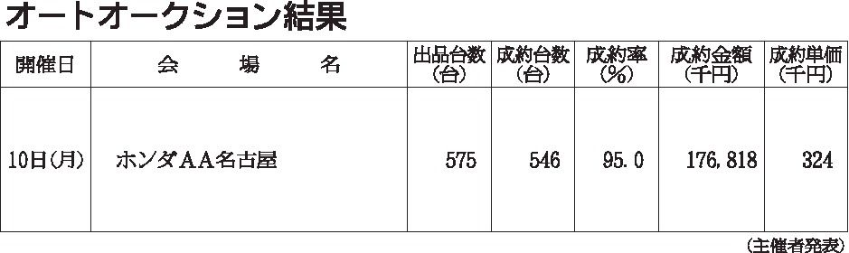 〈オートオークション結果〉中部地区 2020/8/10