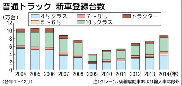 景気回復などにより、物流が活発化している一方で、燃料費節減や環境対応、ドライバー不足など数々の課題を抱えるトラック業界。日本自動車工業会(自工会)がまとめた「普通トラック市場動向調査」「小型・軽トラック市場動向調査」によると、普通トラック...
