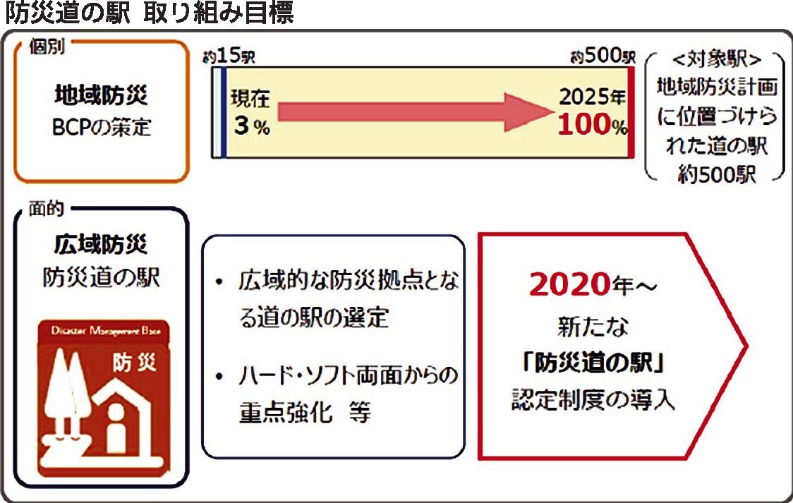 国交省では1993年に道の駅の制度を創設。当初は道路利用者の休憩場所としての機能が主だったが、赤羽国交相が「各地域での創意工夫もあり、道の駅自体が観光目的地や地域の拠点となってきた」と評価するように、着実に役割を広げてきた。こうした動きを「第2ステージ」に位置づけていたが、さらなるステップアップを目指し、2020年から防災機能を持つ「第3ステージ」への移行を目指してきた。今回の初選定でこうした取り組みが実を結んだ。