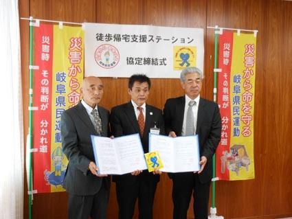【岐阜】損害保険ジャパン日本興亜の自整業代理店で組織するAIRオートクラブ岐阜支部(林周平支部長)と岐阜中央支部(松岡孝司支部長)は24日、岐阜県と「災害時における徒歩帰宅者支援に関する協定」を締結した。 県内にあるAIRオートクラブの1...