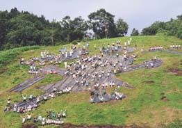 ○…急斜面のスキー場にアンパンマンのキャラクターが鮮やかな花とともに大きく浮かび上がる―。7月27日、東村山郡山辺町の白山スキー場で行われた植花事業『ネッツ花文字作戦』の1コマだ。 ○…ネッツトヨタ山形(鈴木久夫社長)は今年4月、県が創設...