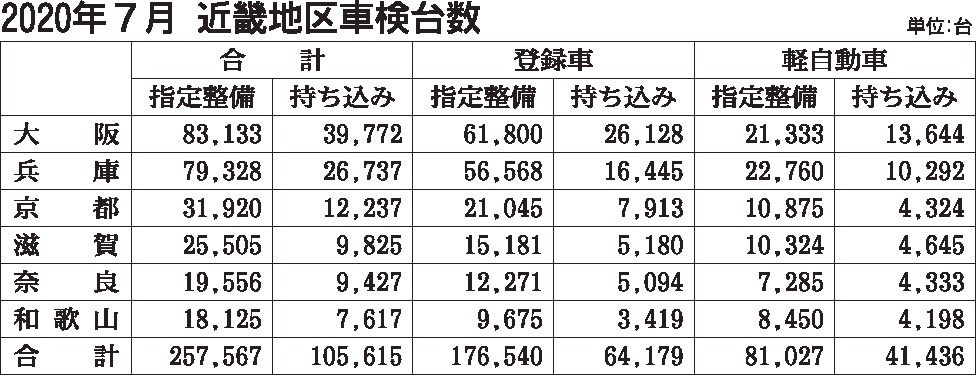 近畿2府4県の2020年7月の継続検査(車検)台数(軽自動車を含む)は、前年同月比3・2%減の36万3182台で2カ月ぶりのマイナスだった。新型コロナウイルス感染症対策として行われた車検証の有効期限伸長により急回復した6月から一転し、落ち...