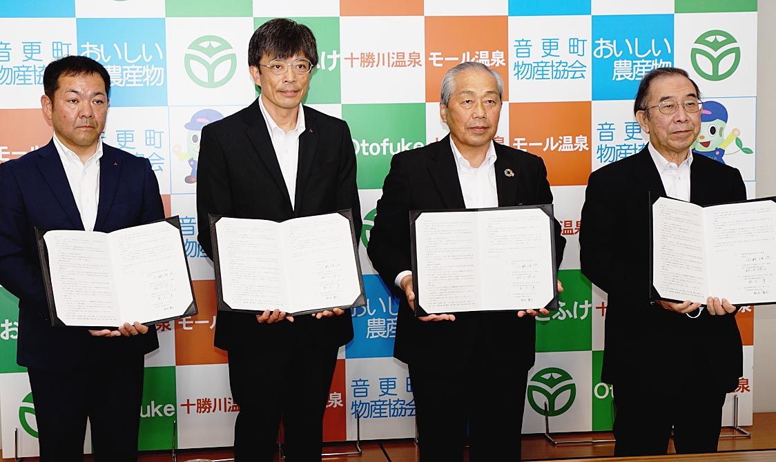 【帯広】三菱自動車、帯広三菱(鈴木修士社長)、十勝三菱(鈴木享社長)は、災害時協力協定を音更町と締結した。 協定は災害発生時、給電などに活用できるアウトランダーPHEVなどの電動車を被災地や避難所へ速やかに届けて貸与するという内容。音更町...
