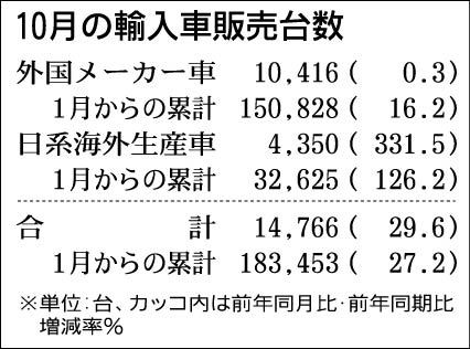 10月の輸入車新規登録台数、30%に迫る大幅増