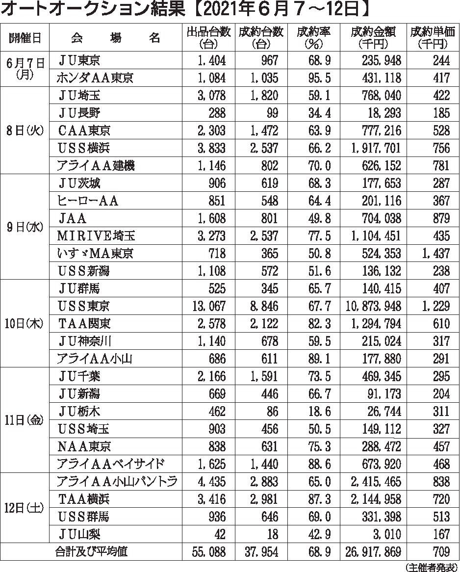〈オートオークション結果〉首都圏 2021/6/7~12