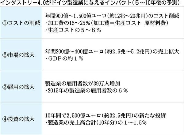 経営コンサルティングファームのボストンコンサルティンググループ(BCG)は、「インダストリー4・0」がドイツ製造業に与える影響を試算したレポートを発表した。それによると、5~10年後の予測として年間900億~1500億ユーロ(約12兆~2...