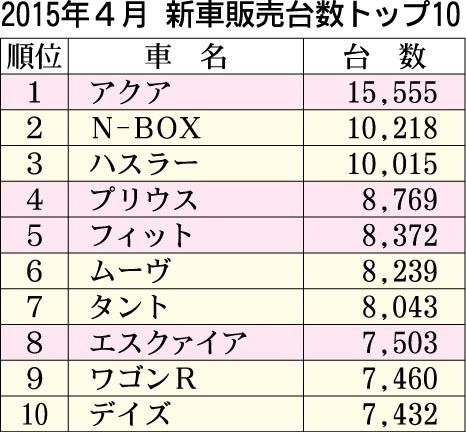 4月の新車販売、アクア首位返り咲き 軽に反動減の影響