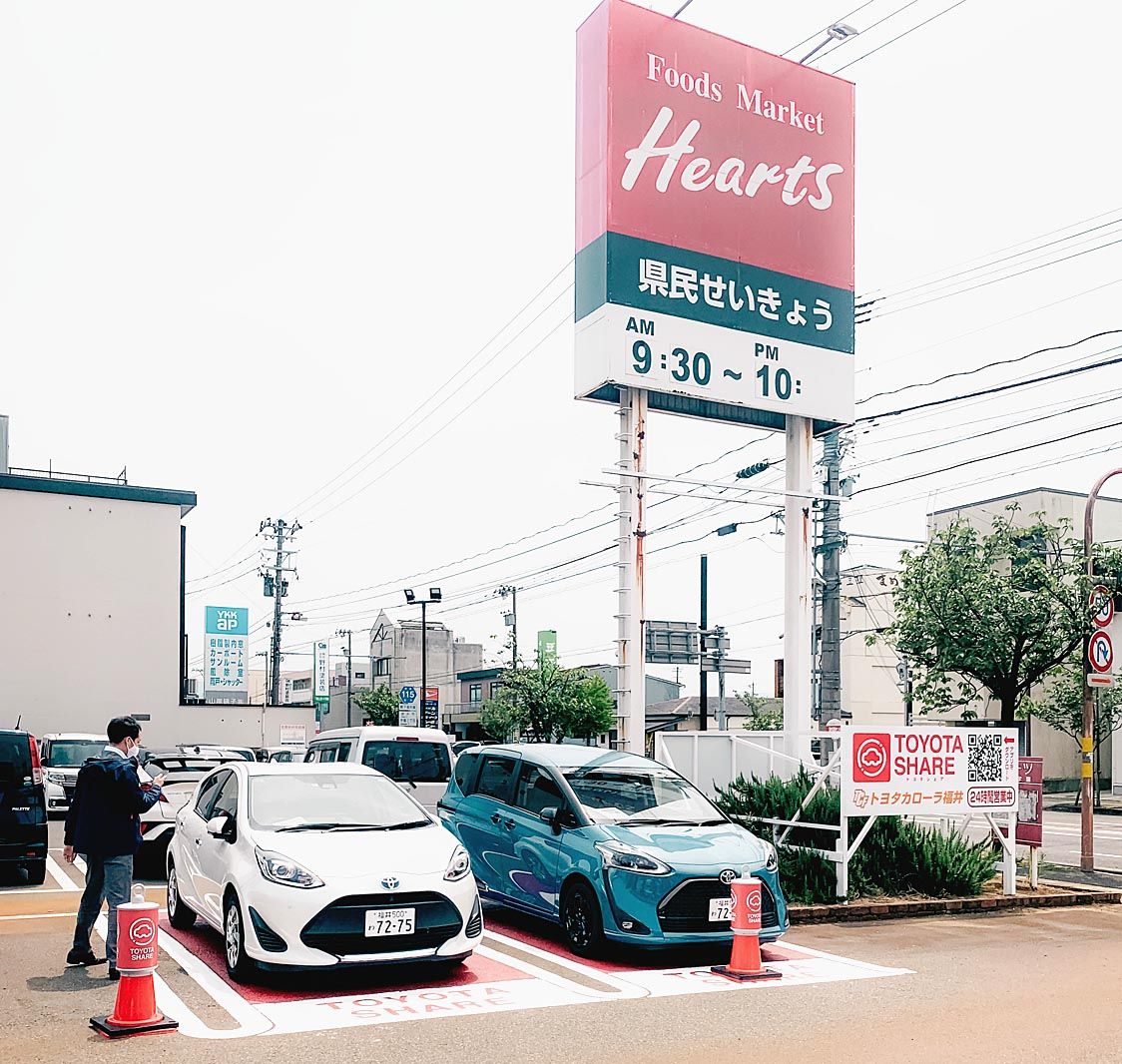【福井】トヨタカローラ福井(田中森社長)は、福井県民生活協同組合が運営するスーパー「ハーツ学園店」の駐車場の一角に、トヨタ自動車のカーシェアリングサービス「TOYOTA SHARE(トヨタシェア)」ステーション(ST)を開設した=写真。学...