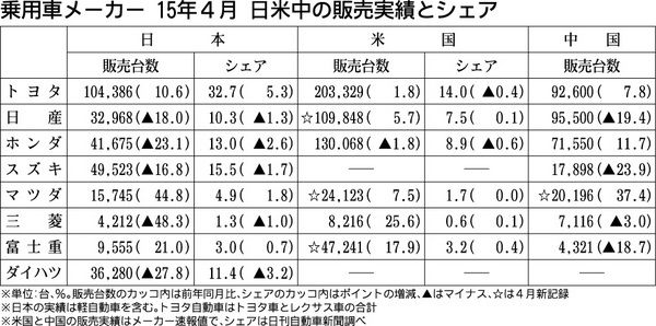 日系メーカー4月販売、米市場 3社が最高更新