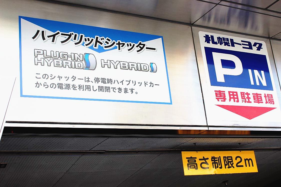 札幌トヨタ本社地下駐車場、ハイブリッドシャッター導入 車両の電力で自動開閉