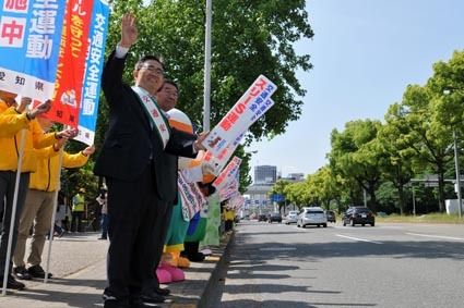 愛知県及び愛知県交通安全推進協議会(会長=大村秀章愛知県知事)は11日、名古屋市中区の愛知県庁本庁舎正面玄関前で「春の全国交通安全運動」の出発式と啓発キャンペーンを行った。大村知事をはじめ愛知県警察本部の木岡保雅本部長、愛知県議会代表の三...