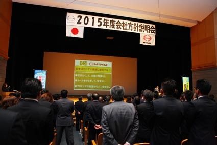 九州日野(平川憲一郎社長)はこのほど、新宮町のそぴあ新宮で「2015年度会社方針説明会」を開催した。北部4県14拠点の全社員約500人が初めて一堂に会して、15年度の会社方針を共有化するとともに、社員表彰を行った。15年度の新車販売ではト...