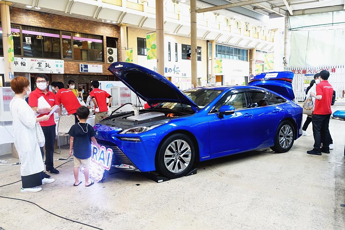 【鹿児島】鹿児島県トヨタ販売店5社は、地元の商業施設が開催した「環境フェアin山形屋」に出展し、エコカーをPRした=写真。燃料電池車「ミライ」やプラグインハイブリッド車「プリウスPHV」を展示したほか、小学生以下を対象としたワークショップ...