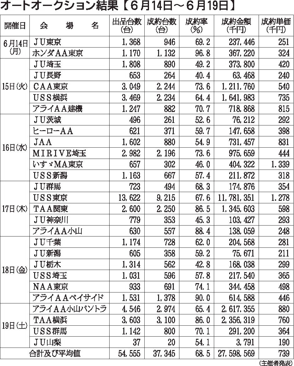 〈オートオークション結果〉首都圏 2021/6/14~19