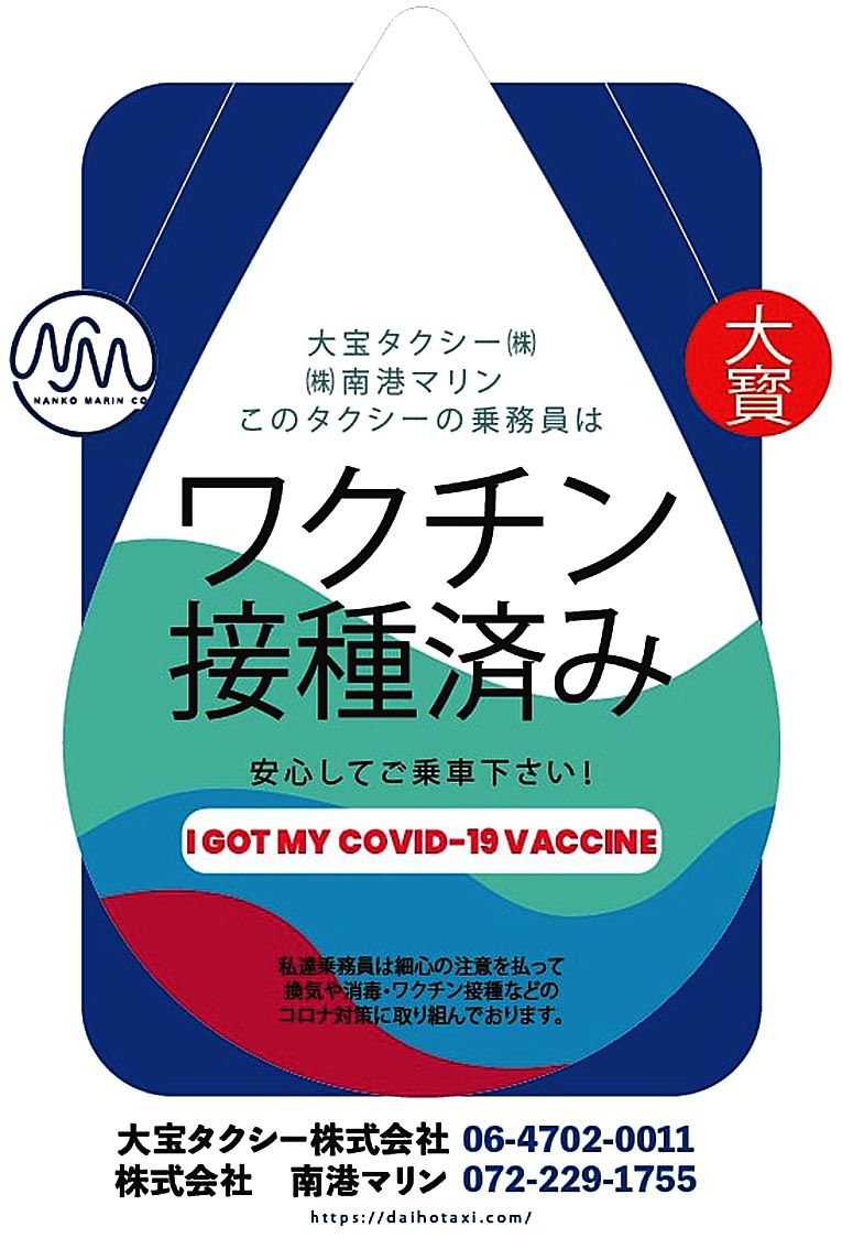 大宝タクシー(宝上能史社長、大阪市住之江区)は、運転手のワクチン接種済み表示サービスを実施している。タクシー内にワクチン接種が完了したことを示すオリジナルステッカー=写真=を掲示し、乗客の不安緩和を図る。同社によると国内初のサービスになる...