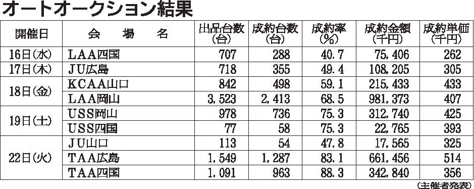 〈オートオークション結果〉中・四国地区 2025/12/17~23