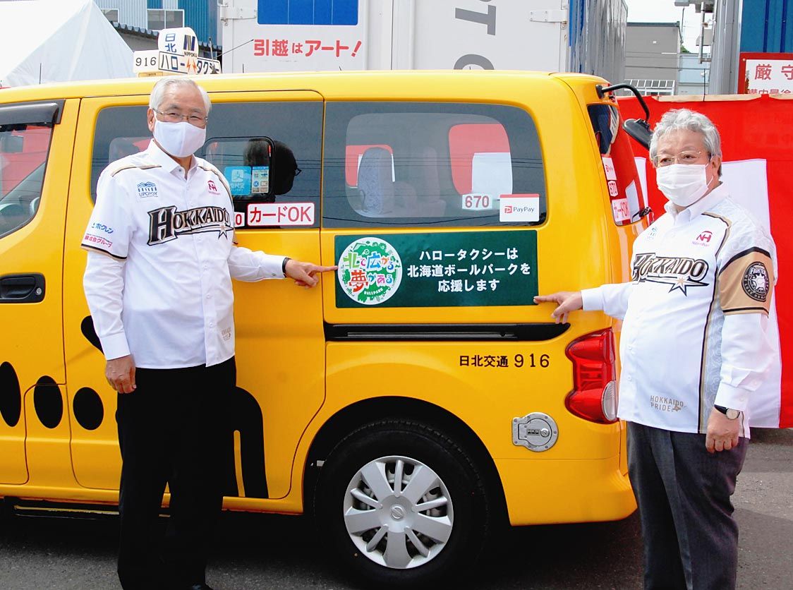 〇…北海道・北広島市に建設中の日本ハムファイターズの新球場を核とする「北海道ボールパークFビレッジ」を応援するタクシーの出発式が札幌市内で行われた。「北で広がる 夢がある」のシンボルマークを記したマグネットプレートを車体に貼り、運行を開始...
