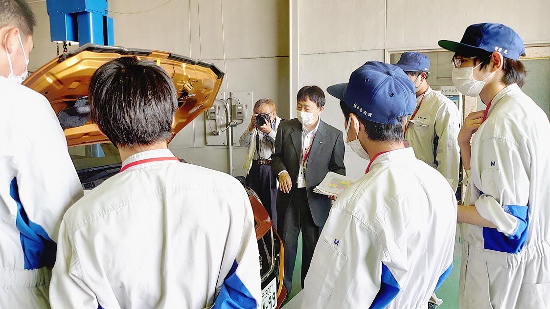 【仙台】宮城県加美農業高等学校(阿部幸弘校長)で、日本自動車教育振興財団が主催する講師派遣事業が行われた=写真。農業機械科の3年生33人が出席し、講師を務めた日産サティオ宮城(小林正樹社長)による「電気自動車について」の講義を受講した。同...