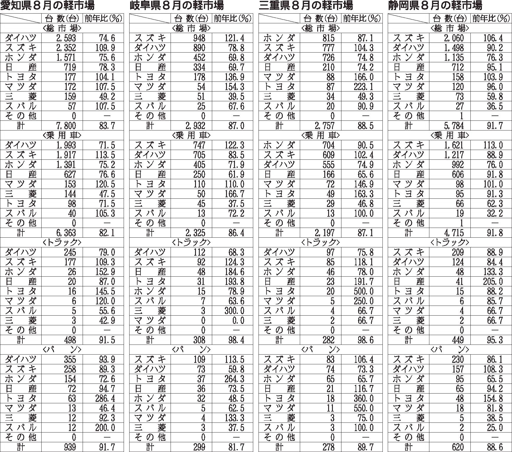 〈中部4県2020年8月の軽市場〉
