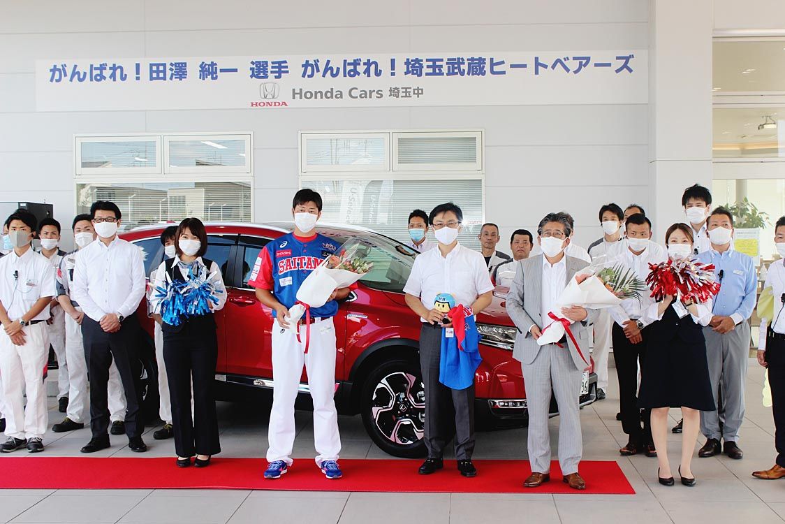 ホンダカーズ埼玉中(石井敦社長)は、オフィシャルスポンサー契約を結んでいる独立プロ野球チーム・埼玉武蔵ヒートベアーズの田澤純一選手にCR―Vのハイブリッド車1台を無償貸与した。 同社は東大宮店に、ヒートベアーズの今井英雄球団代表と田澤選手...