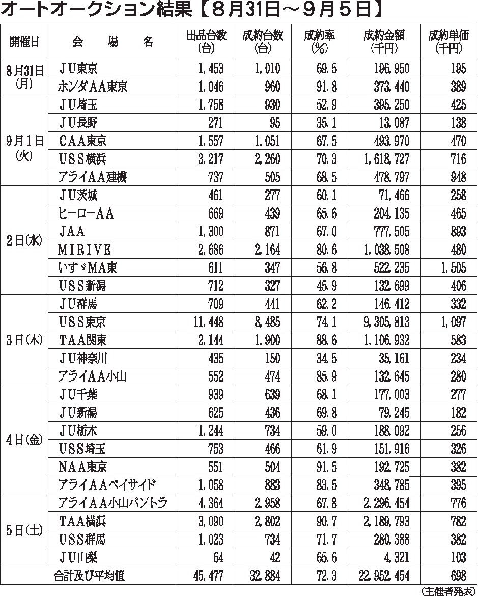 〈オートオークション結果〉首都圏 2020/8/31~9/5