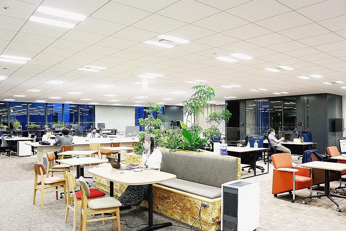 オークネットがリモートワーク導入を積極的に進めている。2020年12月に行った本社オフィスのリニューアルを機に、フリーアドレス制を採用した=写真。スタッフ全員のデスクを廃止し、空いたスペースをコミュニケーションスペースとして有効活用してい...