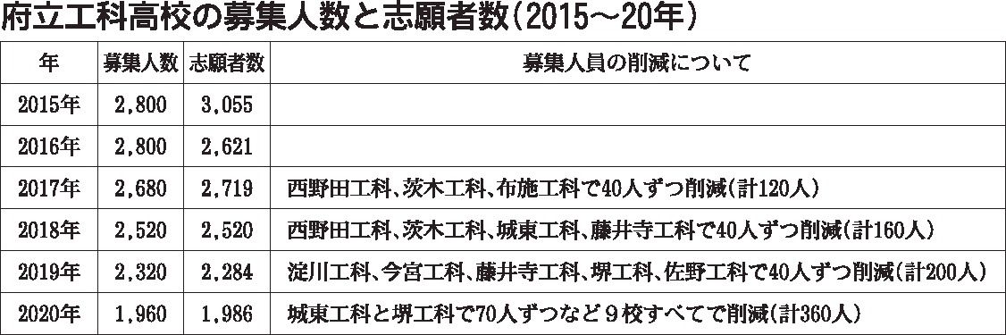 大阪府教育委員会が進めている府立・市立高校の再編で、9校ある府立工科高校が大きく生まれ変わる。同委員会は生徒数減少を見据えた府立・市立高校の整備に取りかかっているが、工科高校では志願者数の減少もあり、ここ4年は募集人員を削減している。工科...