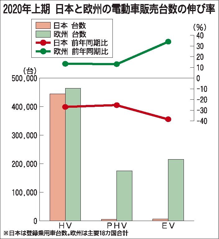 欧州市場で電動車販売が伸長している。1~6月の販売累計では、電気自動車(EV)が前年同期比34・1%増となり、ハイブリッド車(HV)は先行する日本国内の台数を上回るなど、電動車シフトが鮮明となっている。新型コロナウイルス感染拡大で市場は大...